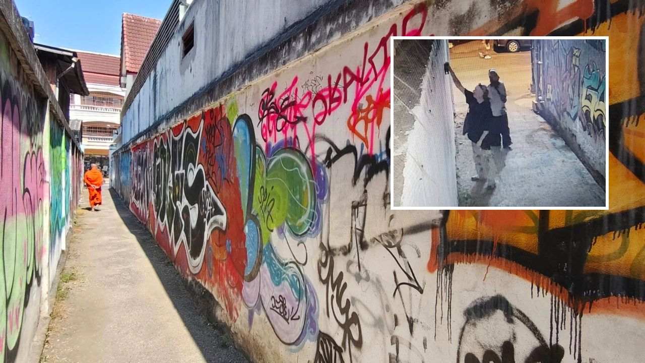 The abbot of the Buddhist temple, Phra Kru Palad Preeda Jaiboon, filed a complaint on Tuesday, February 3, after CCTV footage identified a couple, presumably foreigners, tagging the perimeter wall of Wat Dok Euang.