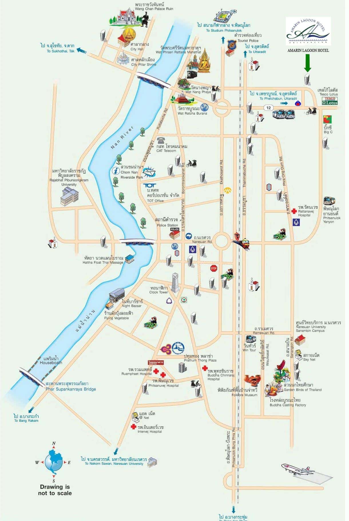 Cartes de la ville et de la province de Phitsanulok, situées dans le nord du pays, entre Bangkok et Chiang Mai.