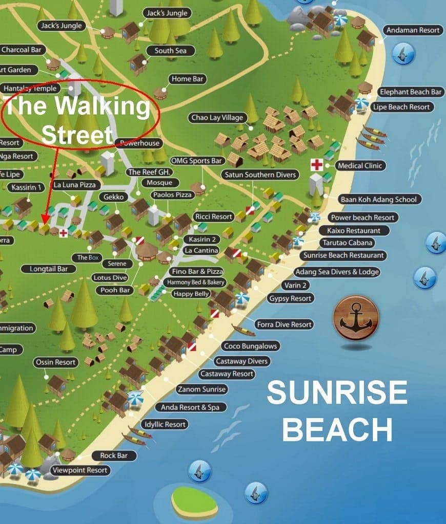 Cartes de l'île de Koh Lipe, située au sud de la Thaïlande, sur la mer Andaman, dans l'archipel Adang Rawi.
