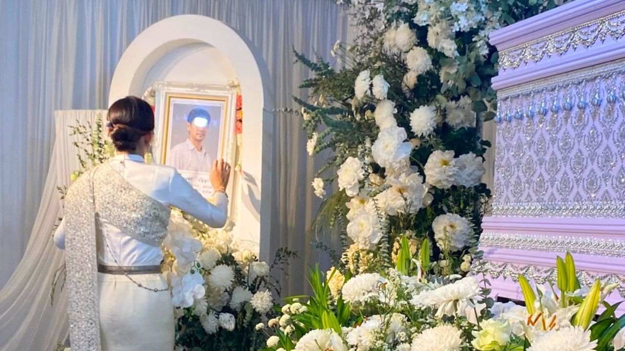 Une Thaïlandaise a revêtu une robe de mariée et chanté lors des funérailles de son fiancé, décédé juste avant leur mariage.