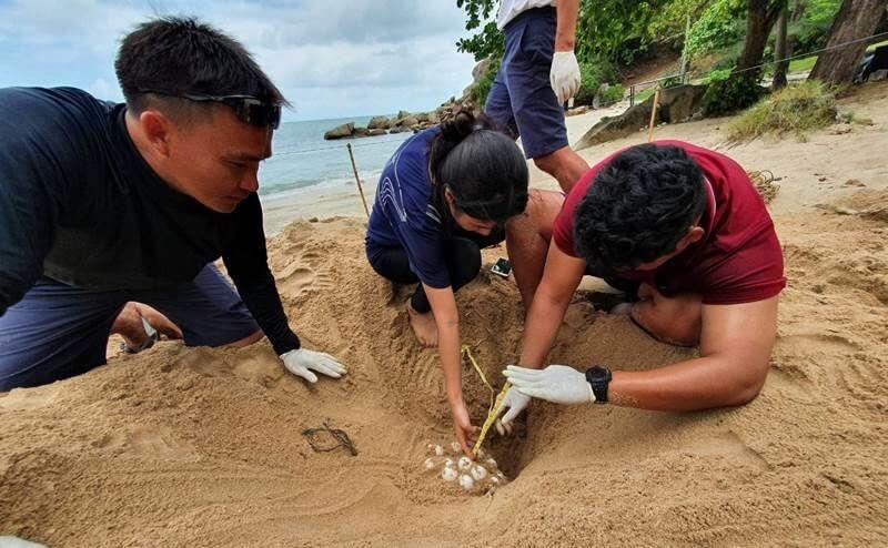 Une telle découverte à Koh Samui est rare ; les tortues vertes (Chelonia mydas) ont tendance à pondre leurs œufs sur des rivages éloignés dans la mer d’Andaman – et non dans les stations touristiques très fréquentées du golfe de Thaïlande.