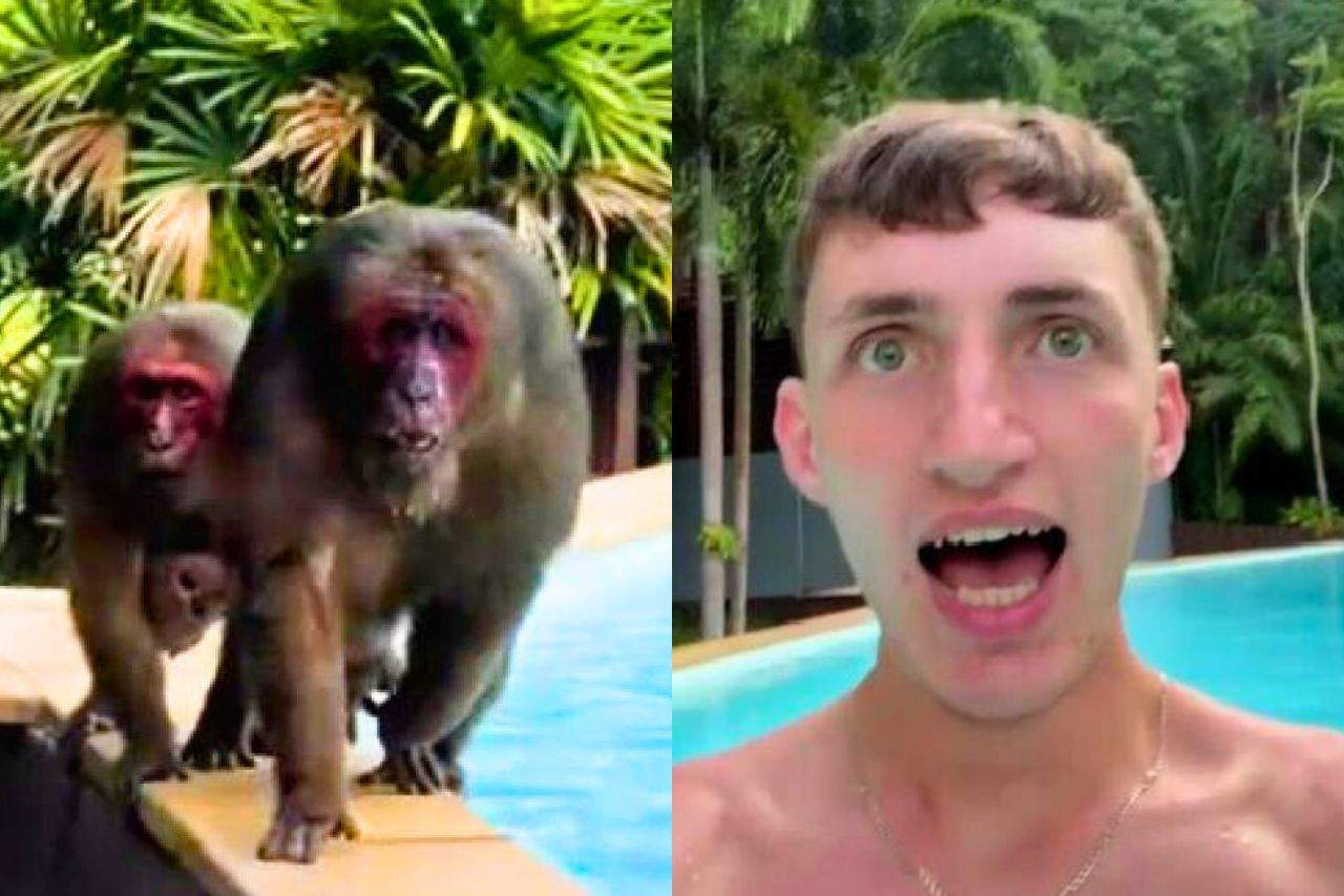 Un touriste britannique a vécu une expérience choquante et inoubliable pendant ses vacances en Thaïlande lorsqu’un groupe de singes l’a encerclé dans la piscine d’un hôtel.