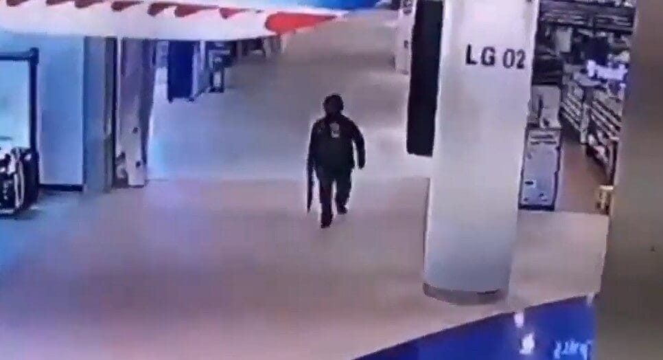 Les images des caméras de sécurité du centre commercial montraient un jeune homme en tenue de camouflage qui passait devant des magasins avec une arme longue.