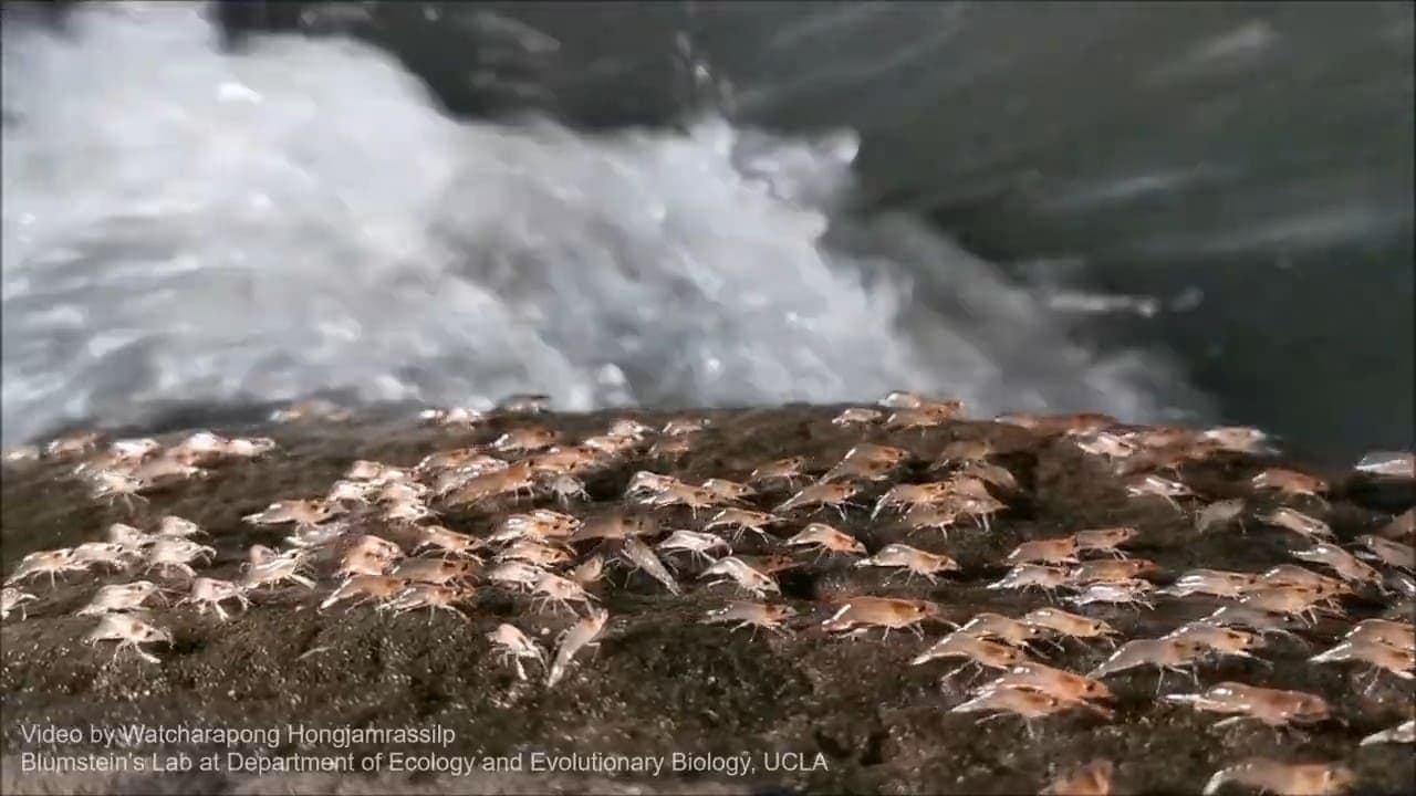 Depuis des décennies, les habitants savent que ces crevettes sortent de l’eau et défilent sur les rives rocheuses.