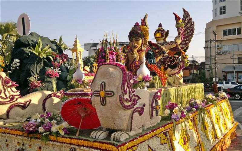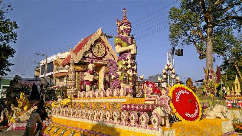 Pendant les trois jours du Festival des Fleurs de Chiang Mai, la ville surnommée « la Rose du Nord » se couvre de fleurs avec des défilés de chars à fleurs géants et richement décorés, des fanfares en uniforme des écoles et universités locales et des danseuses portant des costumes traditionnels thaïlandais.