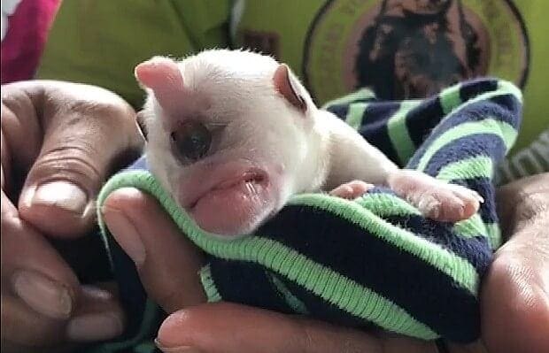 « Nous souhaitons que le chiot survive malgré sa malformation.