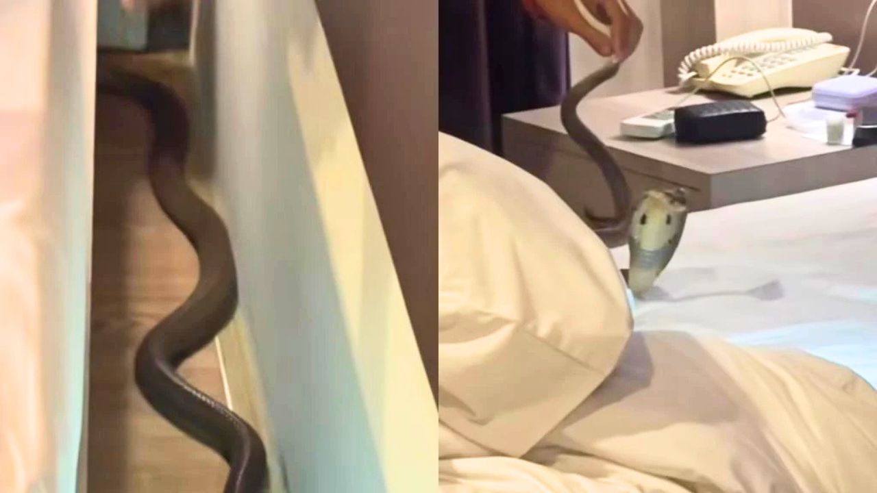 Un couple a vécu une scène de terreur en Thaïlande après s’être réveillé avec un cobra en train de ramper sur leur lit.