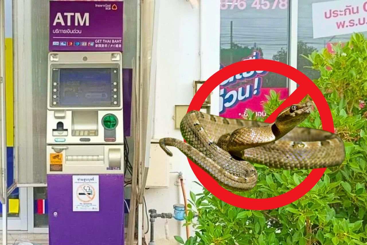 Les agents du poste de police de Lamduan ont reçu un appel de la femme vendredi vers 9 heures du matin, signalant qu’un serpent non identifié se trouvait à l’intérieur d’un DAB situé dans le centre-ville.