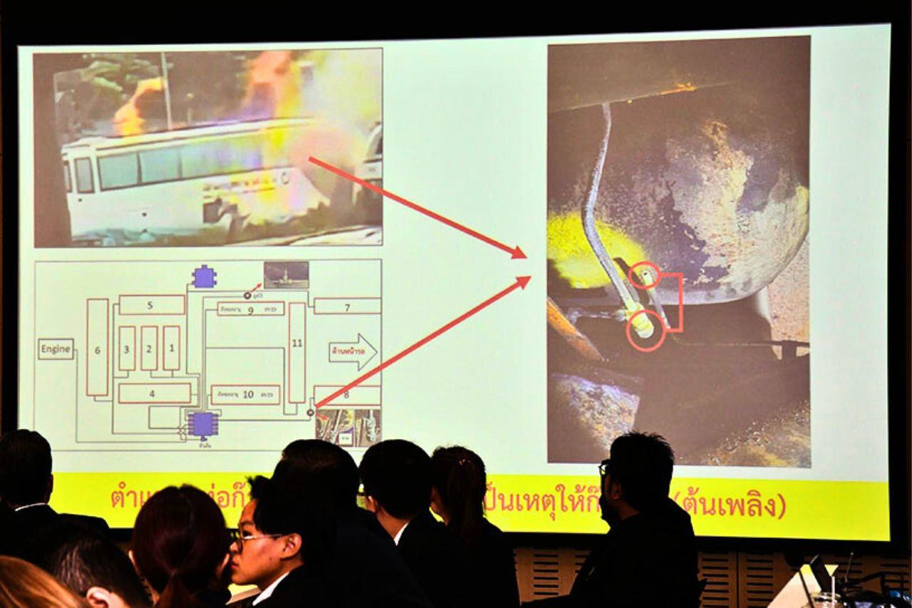 Le jeudi 3 octobre, le lieutenant-général Trairong Phiewphan, commandant de l’Office de la police scientifique (OPFS), a déclaré qu’une première enquête avait révélé que la fuite de gaz s’était produite à l’avant du bus.