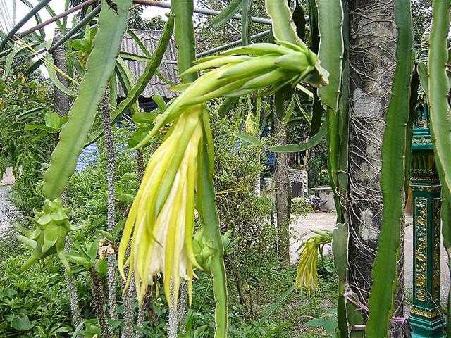 Elle pousse sur une liane, l’Hylocereus undatus, originaire de la Cordillère des Andes, qui s’agrippe au tronc de grands arbres.