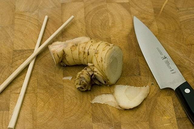 - Prenez d'abord le morceau de galanga de la taille d'un pouce, coupez les tiges et coupez la racine en fines tranches.
